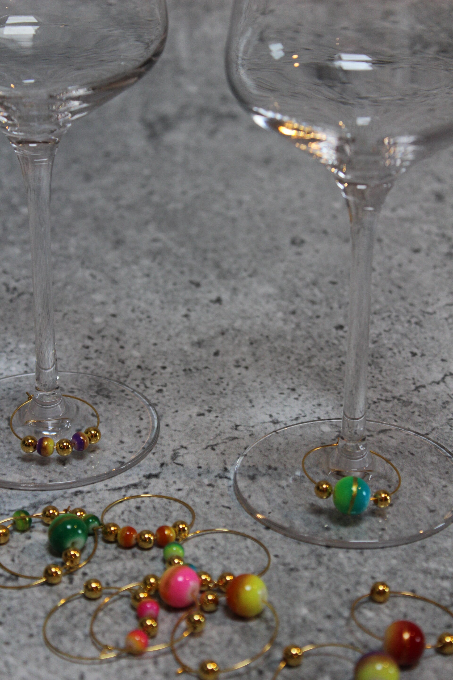 Met elkaar een wijntje drinken is erg gezellig, maar het is niet zo handig wanneer je niet meer weet welk wijnglas van jou is. Dankzij deze goudkleurige wijnglasringen, die er ook nog eens fleurig uitzien, ben je nooit meer je glas kwijt en ziet je tafel er ook nog leuk uit! Je plaatst de unieke ring om de voet van het glas, waardoor je precies weet welk glas van jou is. Je ontvangt ze in een set van 6 stuks. Je ontvangt 6 verschillende kleuren, zodat elke wijnglasring uniek is. Welke kleuren je ontvangt? Dat houden we nog even spannend!